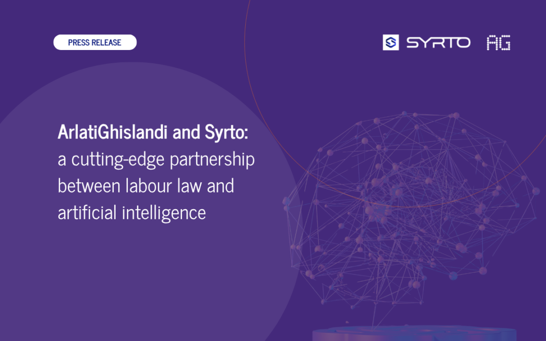 ArlatiGhislandi, with its expertise in labour, industrial relations and tax law, and Syrto, pioneer tech company in the application of Artificial Intelligence to business analysis, announce the launch of a partnership that marks a unique connection in the HR and AI landscape.