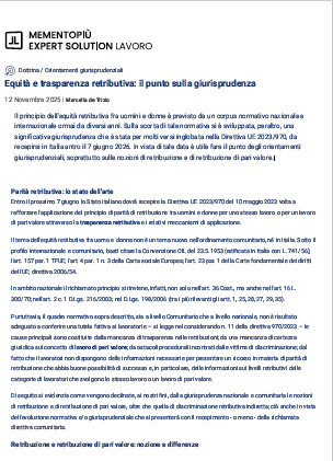AG ha trattato il tema “Equità e trasparenza retributiva: il punto sulla giurisprudenza” pubblicato su MementoPiù – Expert Solution Lavoro – edito da Giuffrè Francis Lefebvre a firma dell’avvocato Marcella de Trizio.