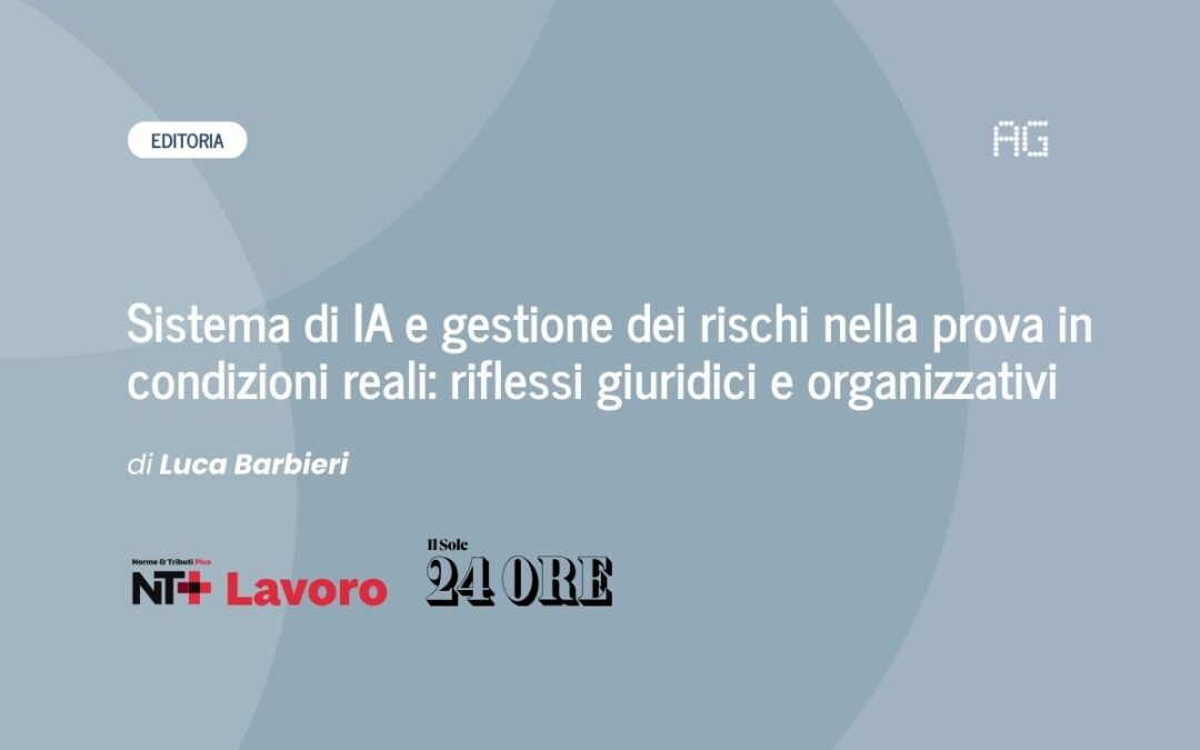 AG ha trattato il tema “Adozione di un sistema di IA ad alto rischio: la responsabilità della scelta degli amministratori d’impresa” sulla rivista NT+ Lavoro, edita dal Sole24Ore a firma di Luca Barbieri.